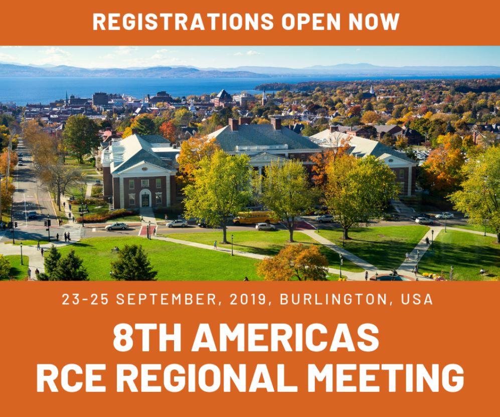 We look forward to your active participation in the 8th Americas RCE Meeting in Burlington, Vermont, USA.