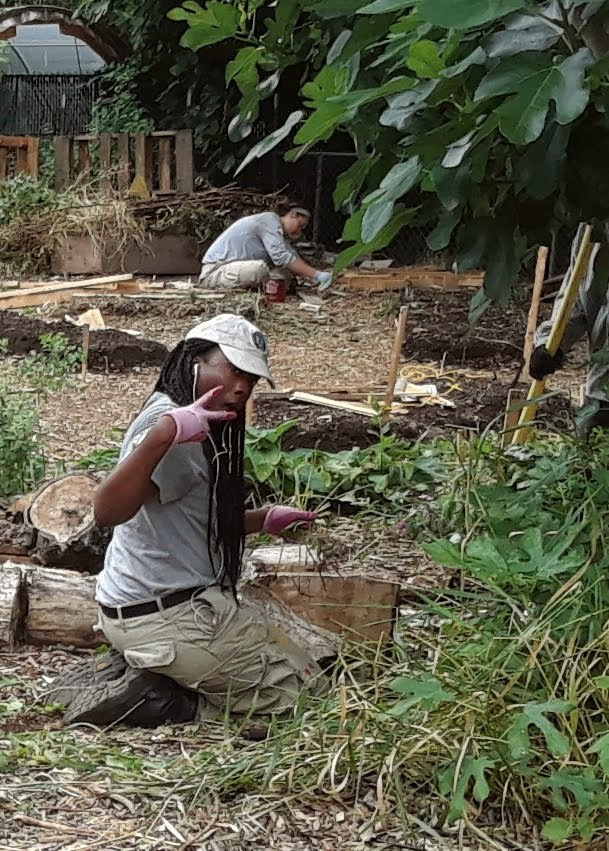 Our goals for the day are to do ecological landscaping – the land is full of natives and rain gardens that need tending, while we also spruce up a parking lot where the market will pop up.