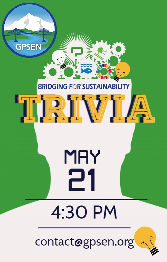 FreeJoin GPSEN for a live half-hour fun sustainability trivia on Thursday, May 21st at 4:30 pm.